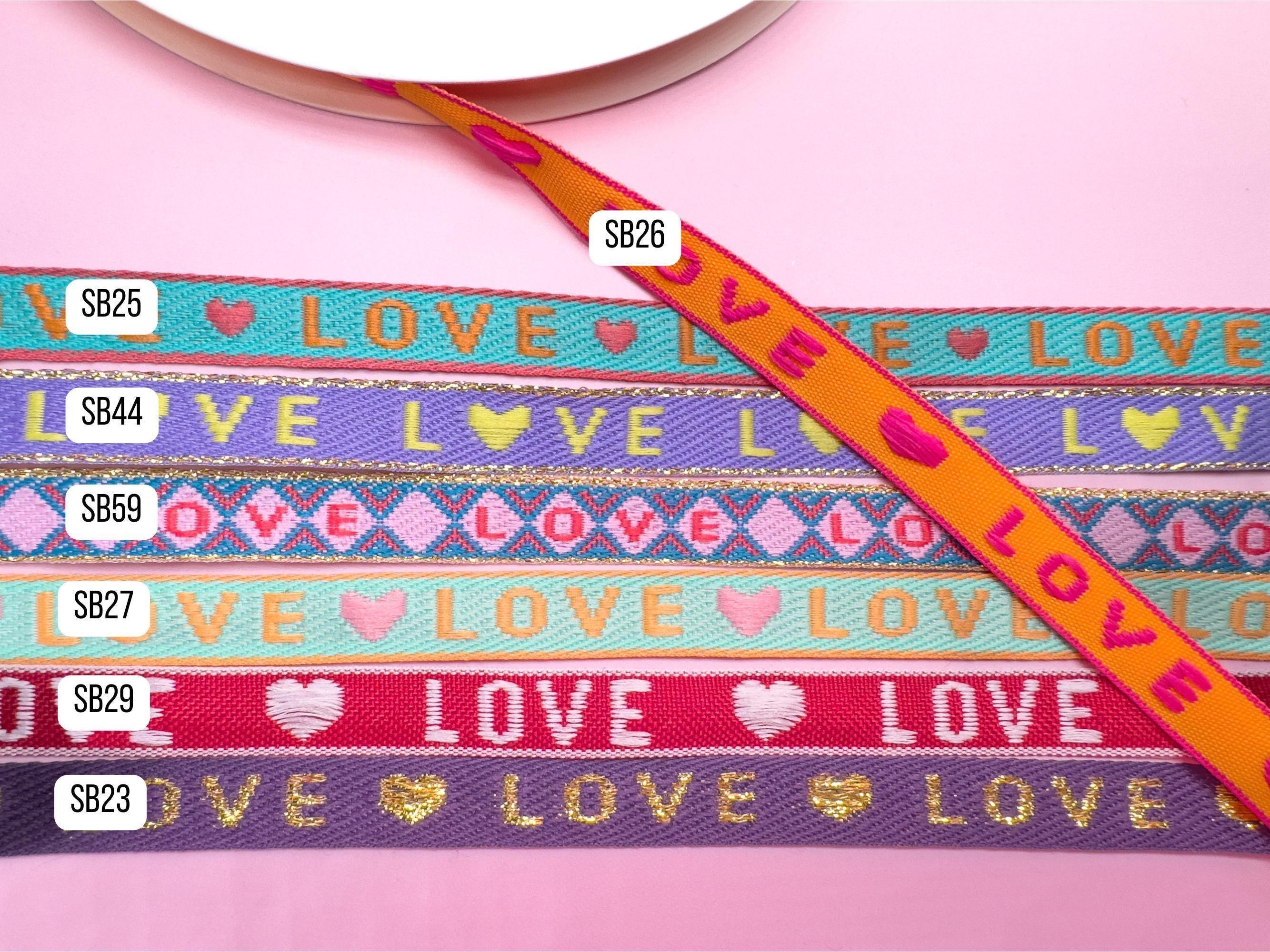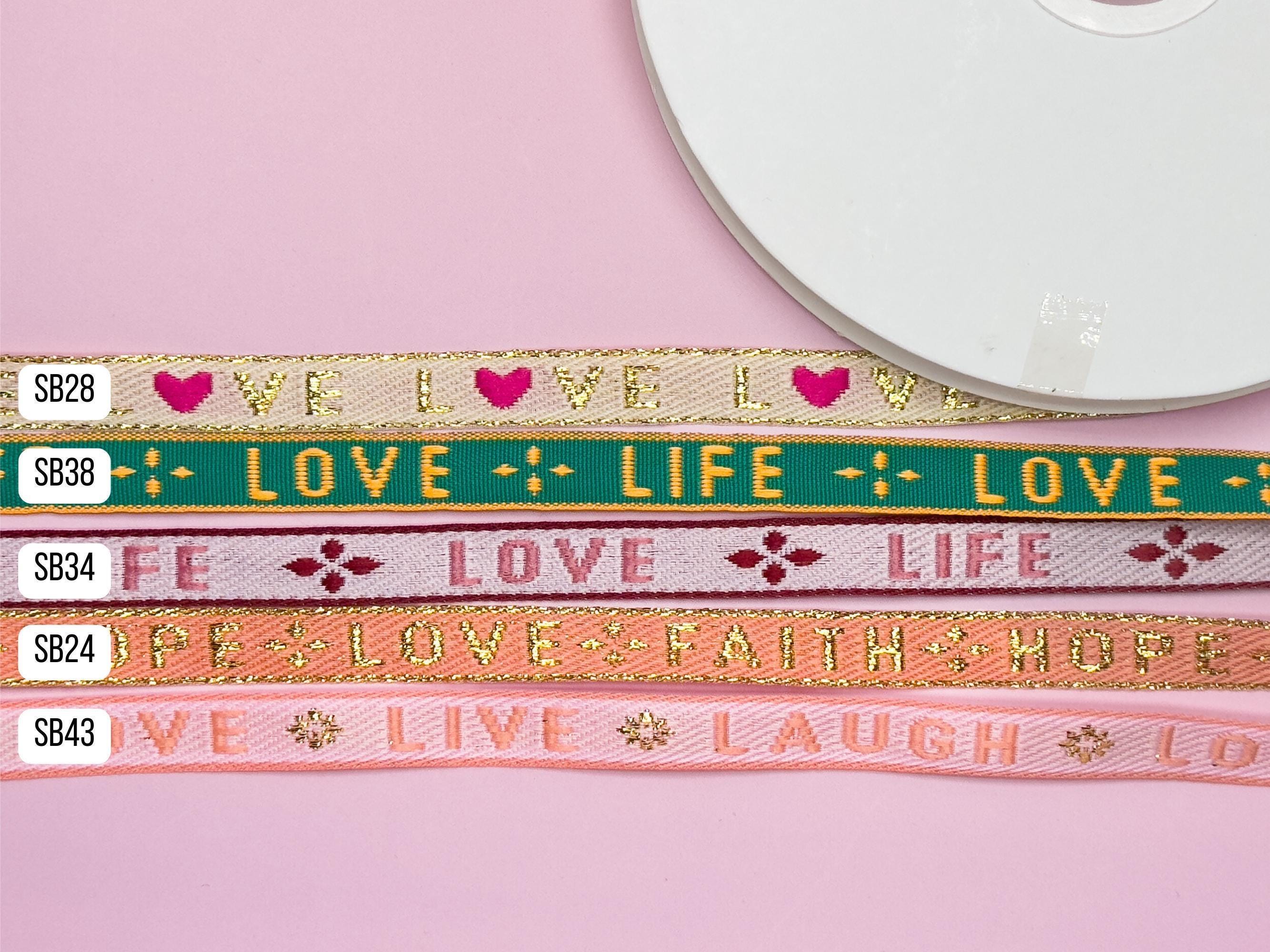 These colorful boho fabric ribbons bring positive messages to your DIY projects! Featuring words like "LOVE," "DREAM," or "FAITH HOPE LOVE," they're perfect for handmade bracelets, macrame, or as a lovely detail for gift wrapping. The ribbons are easy to work with and make any project a special eye-catcher.